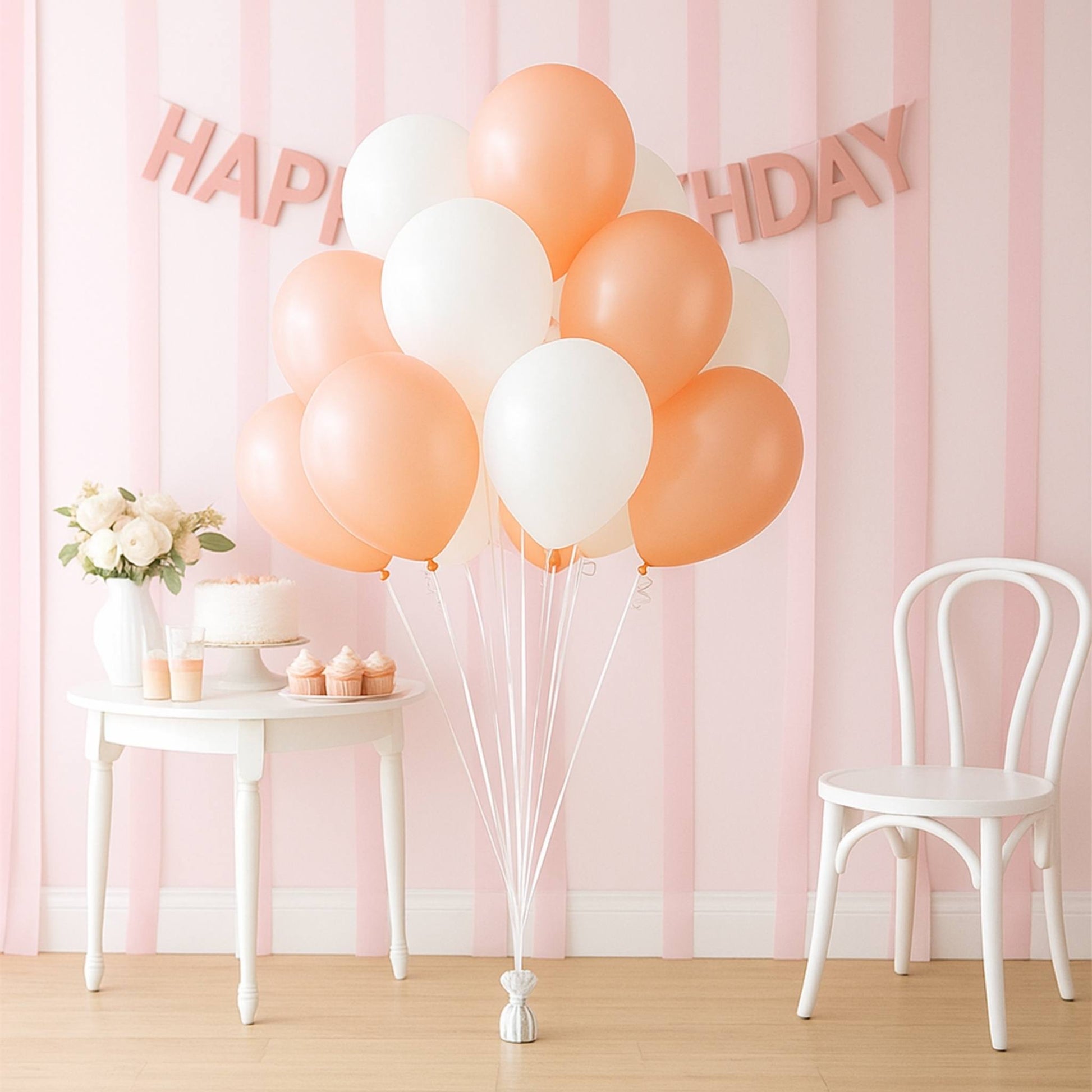 Beautiful Rose Gold and White Color Latex 11 inch Balloon Bouquet is perfect for any celebration. Price includes helium inflation and balloons are treated with Hi-Float to extend float time. 15pcs. Latex Balloons.