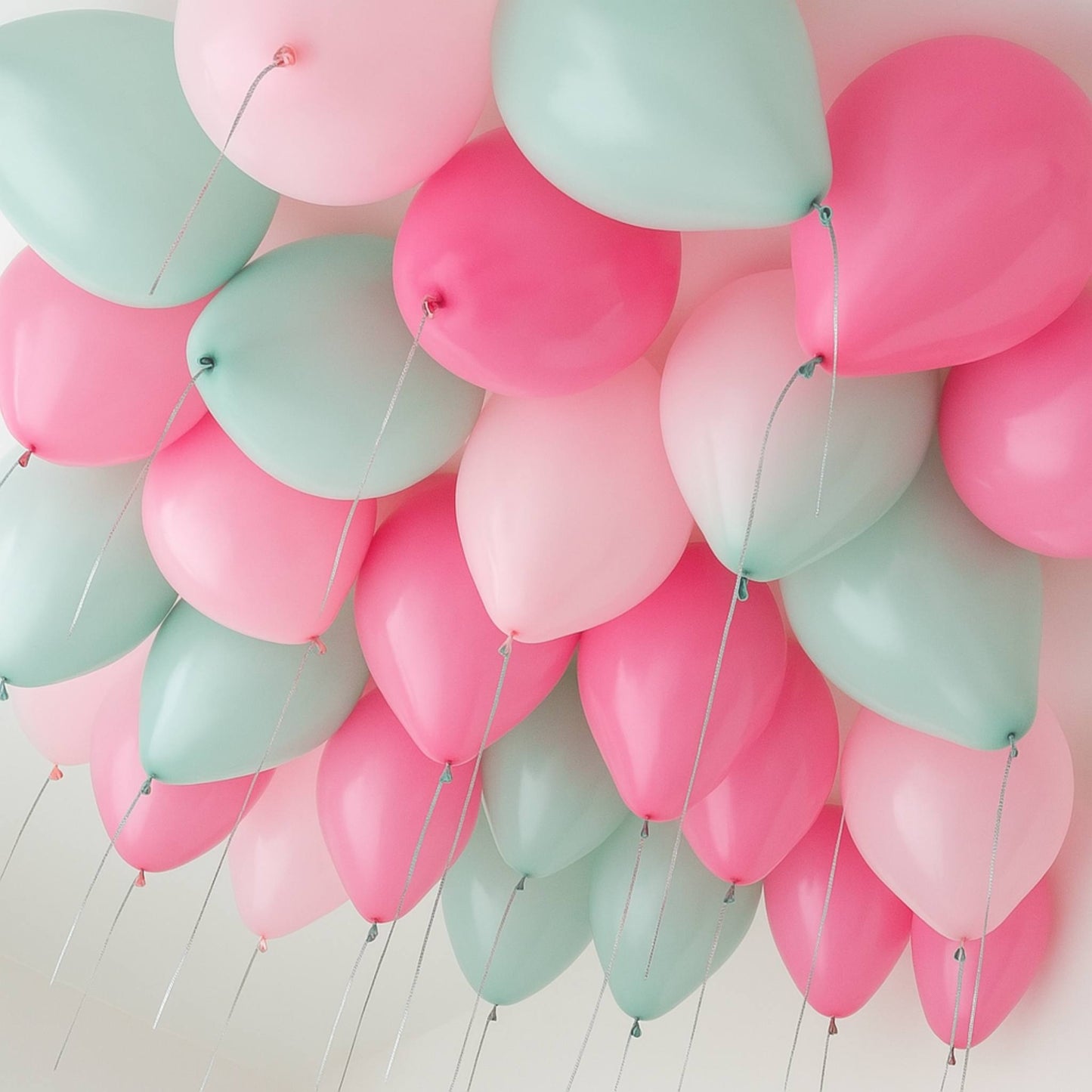 25 Bubblegum Pink Mint Helium Ceiling Balloons