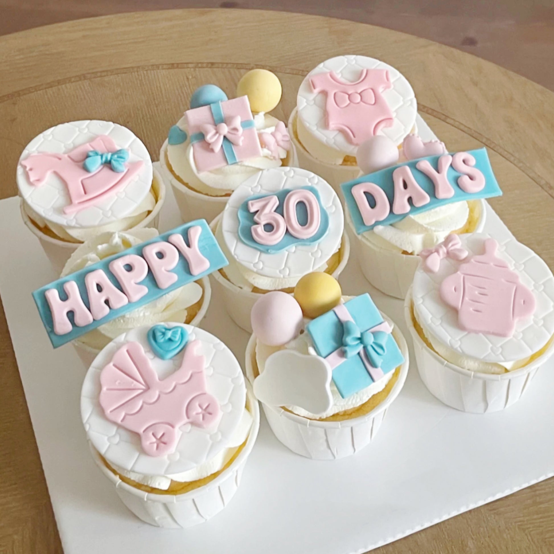 Celebrate the joy of Baby's First Bites with our adorable and delicious cupcakes. Crafted with love and care, these petite treats are perfect for commemorating this precious milestone. Each cupcake is baked to perfection and beautifully adorned with soft pastel colors and charming decorations. Let your little one enjoy their first taste of sweetness with our Baby's First Bites Cupcakes. The perfect addition to any baby birthday celebration, these delightful treats will make the occasion even more memorable. Capture the magic of this special moment and create lasting memories with our irresistible cupcakes.