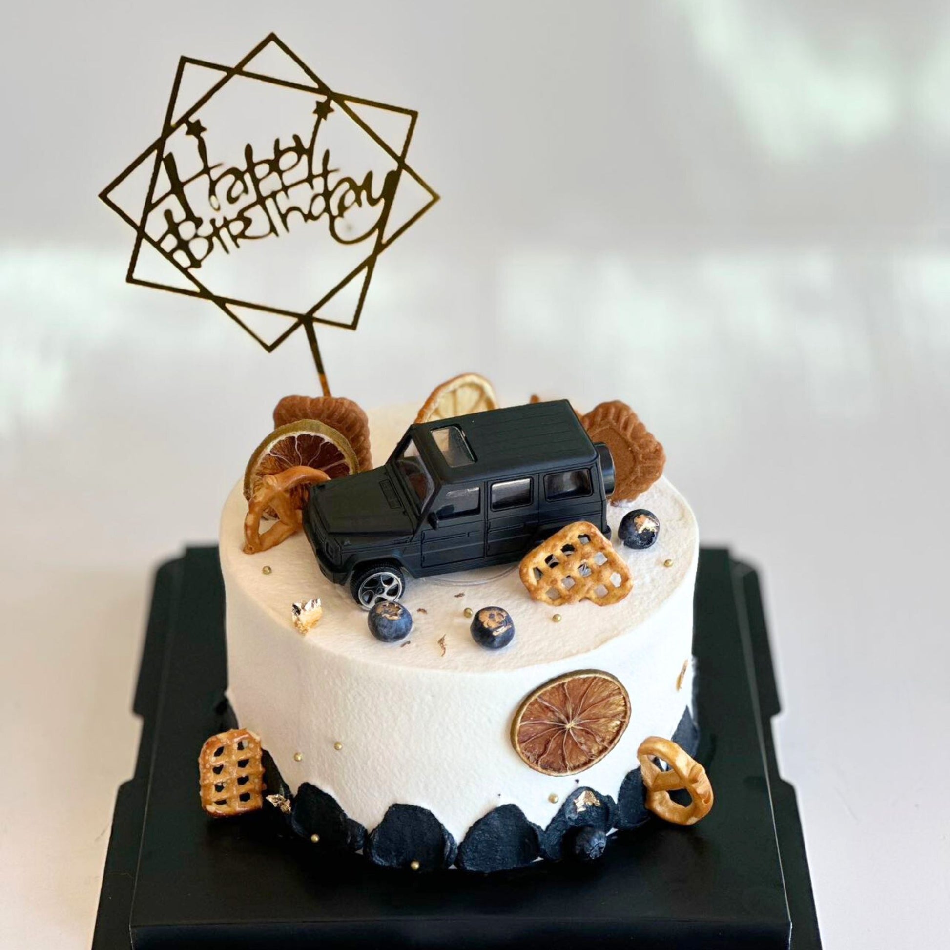 Indulge in the ultimate luxury with our G Class Toy Car Birthday Cake. This sophisticated and exclusive confectionary masterpiece is crafted to resemble the iconic G Class Toy Car, adding an elegant touch to any celebration. Perfect for car enthusiasts, this delicious cake will impress both visually and in taste.