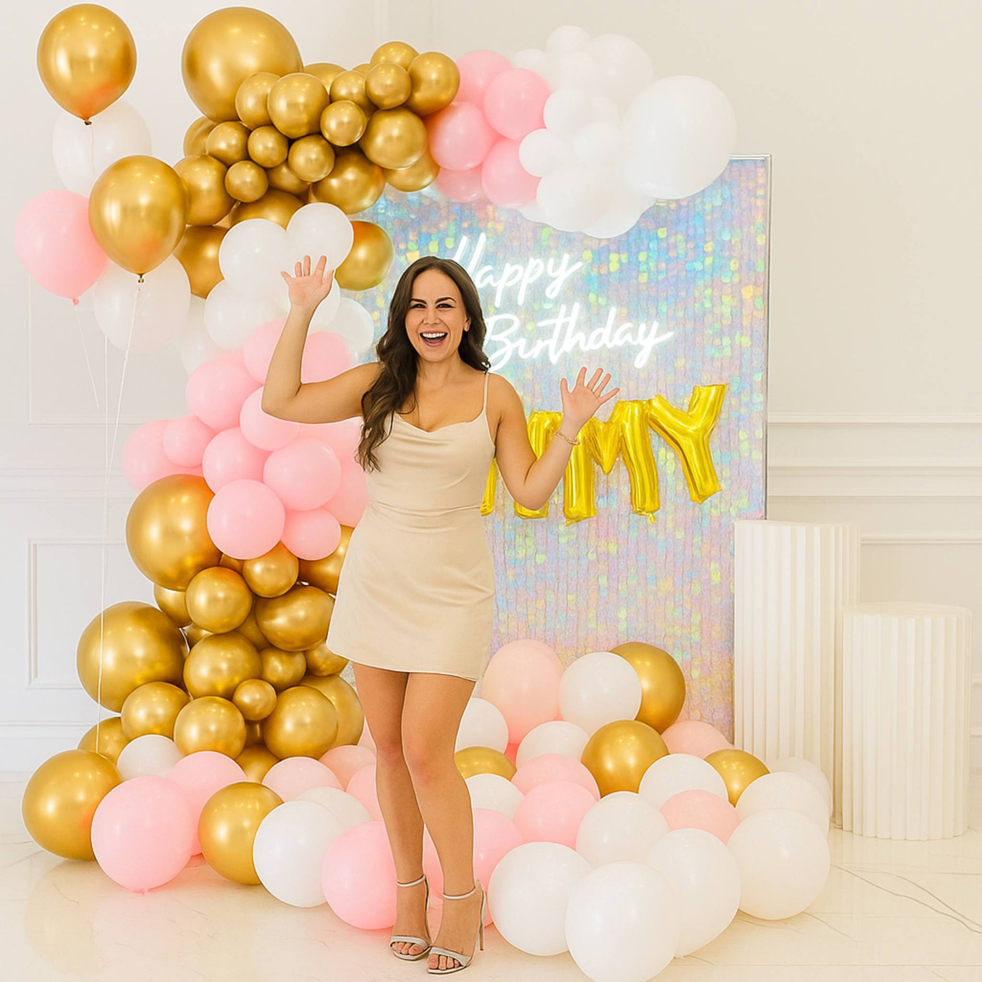 Transform your birthday celebration with the Iridescent Luxury Pink Lemonade Backdrop Panel Balloon Set! This playful decoration adds a shimmering, colorful touch that brightens any party space. Perfect for creating memorable photos and a festive atmosphere, it’s an easy way to elevate your event with a splash of fun and elegance.