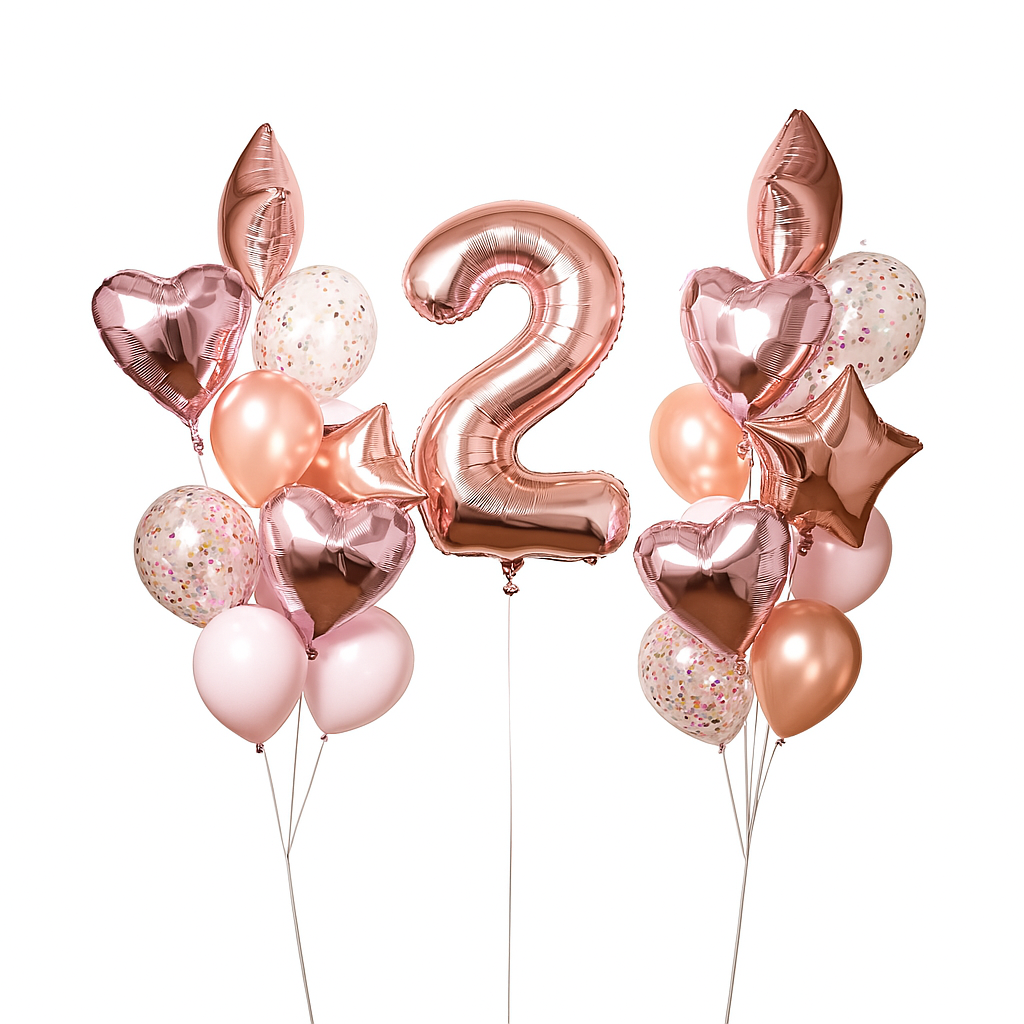 Celebrate your birthday in style with our Twinkle Twinkle Rose Gold Splash Balloon Set! These shiny balloons will add a touch of glamour to any party. Perfect for a fun and playful celebration!